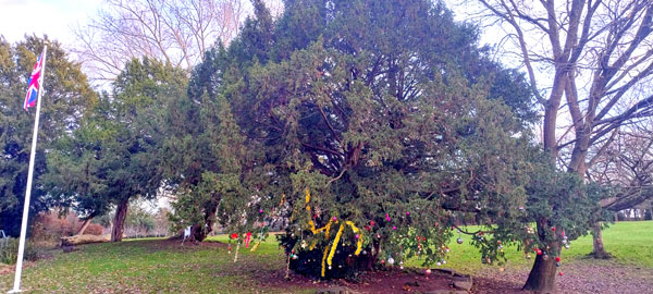 The Mayor of Hillingdon placed a bauble on the Yew tree after the community singing during the charming ceremony. Thanks to the organisers Friends of Eastcote House Gardens and the School