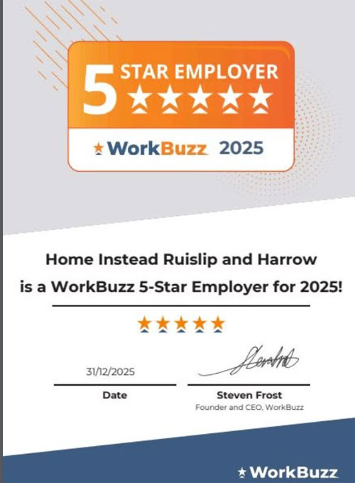We’re so proud to share that Home Instead Ruislip & Harrow has been recognised as a 5-Star Employer by WorkBuzz ⭐⭐⭐⭐⭐